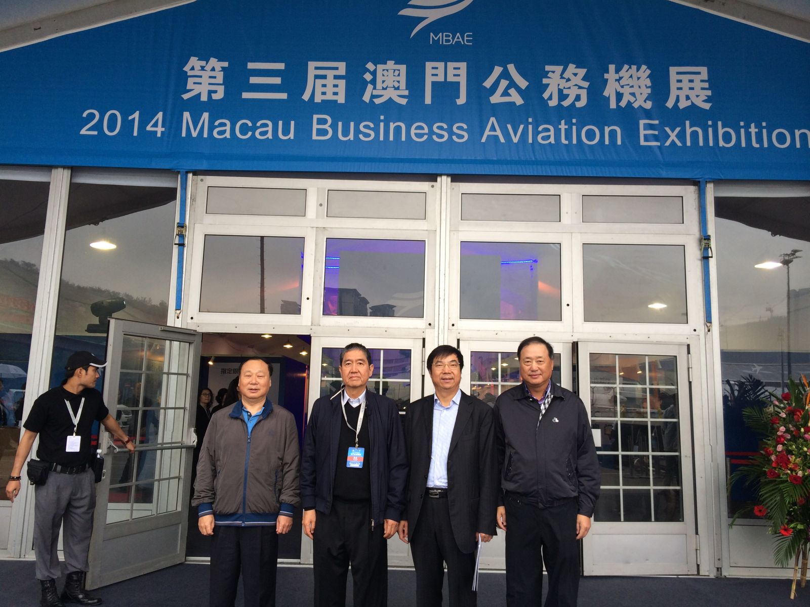 澳门国际机场专营股份有限公司(CAM)董事局主席马有恒先生、执行委员会主席邓军博士、执行委员会办公室主任(总监)罗颂仪女士于2014年11月8日参观第三届澳门公务机展。