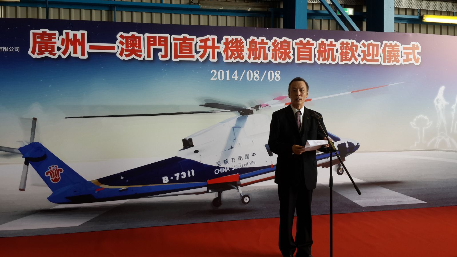 中国南方航空股份有限公司珠海直升机分公司(以下简称南航珠海直升机分公司)计划今年开通澳门往返广州直升机服务。于2014年8月8日举行试运营飞行,首航班机于上午十时半从广州飞抵澳门,澳门国际机场专营股份有限公司(CAM)执行委员会主席高级助理暨物流及通用航空发展部总监崔光先生与一众嘉宾到机场停机坪迎接首航班机。