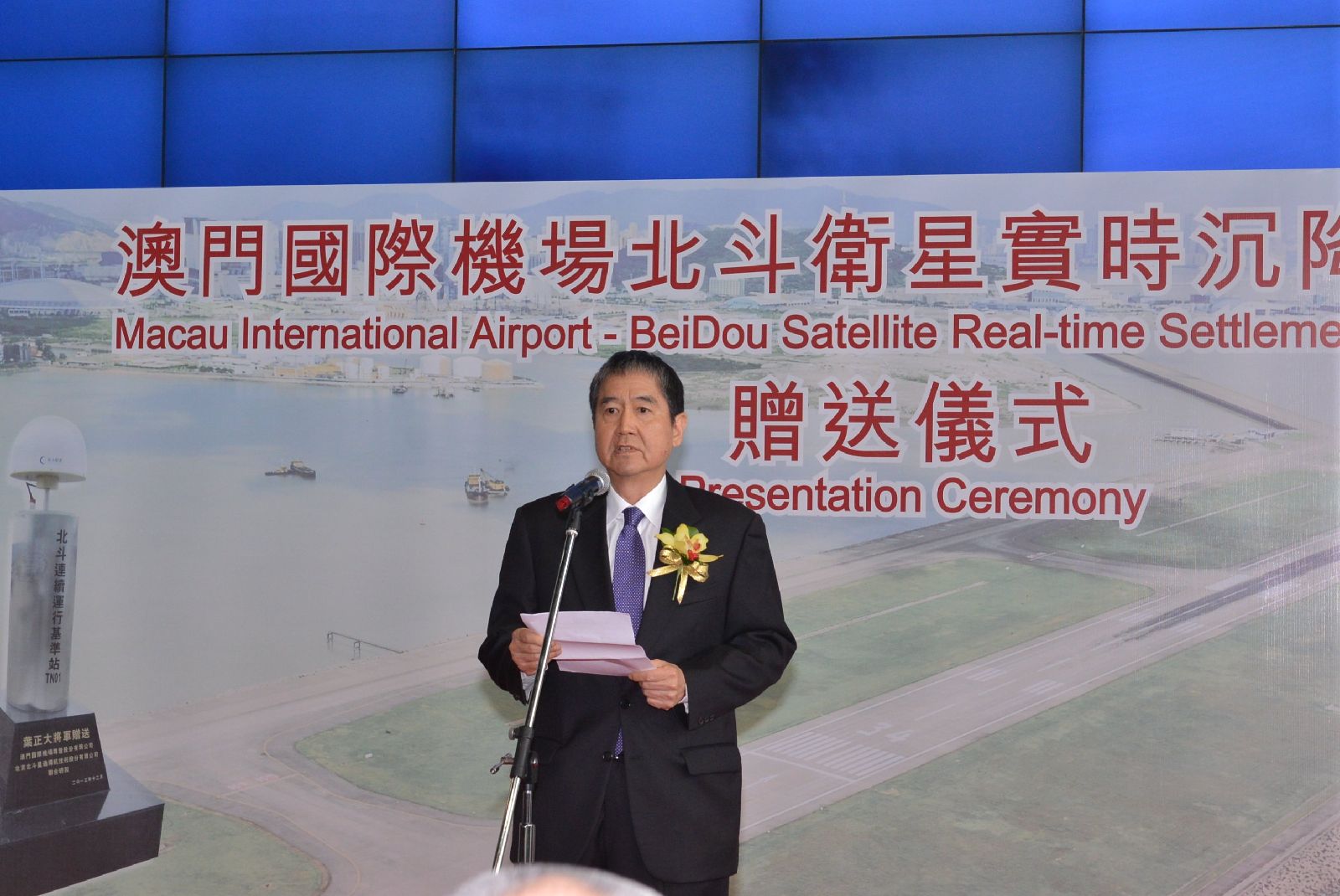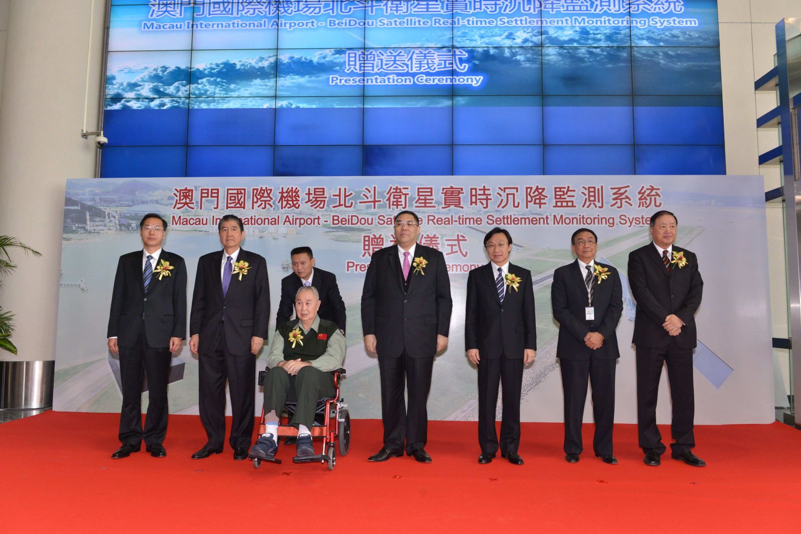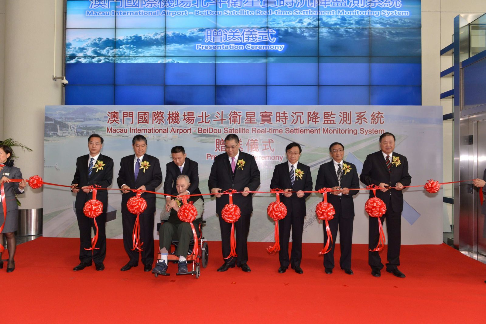 由原国防科工委科技委副主任叶正大将军赠送的澳门国际机场北斗卫星实时沉降监测系统已安装完成,并于12月12日在澳门国际机场客运大楼举行赠送仪式。澳门特别行政区崔世安行政长官、叶正大将军、行政长官办公室谭俊荣主任、澳门国际机场专营股份有限公司董事局马有恒主席、股东大会卢景昭主席、执行委员会主席邓军博士、北京北斗星通导航技术股份有限公司周儒欣董事长等出席仪式并主持剪彩礼。出席见证仪式的嘉宾有:机场专营公司徐伟坤执行董事、梁少培执行董事、澳门特区地图绘制暨地籍局陈汉平局长、民航局机场规划暨航行部林衍新总监、机场管理有限公司董事局刘苏宁主席、机场信息技术管理有限公司王秀瑜董事总经理、澳门保安有限公司赫明总经理等。