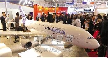 被誉为“优雅绿巨人”的空中巨无霸A三八○至今已投入营运五年,空客共接到订单的总数为二百五十九架,包括已投入营运的九十架A三八○。截至上月底,A三八○已经执飞八万个商业航班,累计飞行六十八万小时。目前全球已有二千九百万人次乘坐过A三八○。A三八○曾连续两届到珠海航展向公众展示,但今届却缺席。