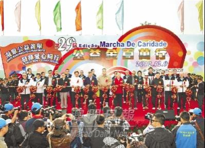 【本报消息】第廿九届公益金百万行昨在天气和暖及爱心洋溢的气氛中进行,逾四万善长齐为公益迈步。龙狮起舞,鼓乐喧天,表演节目精彩纷呈,为百万行大军助兴,欢乐气氛尤胜嘉年华。今年续获各界人士大力支持,无论善款数目与参加人数皆创新高,筹得善款一千三百多万元,超上届纪录,充分体现百万行具有强大的凝聚力,彰显澳人守望相助的为善精神。