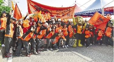 狮子兵团兴高釆烈展示橙色大手掌