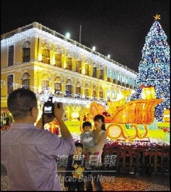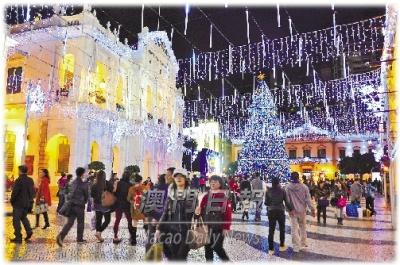 明天是平安夜,小城在圣诞灯饰点缀下,倍添节日气氛。今年灯饰主题“缤纷色彩 · 照耀全城”,包括大三巴、议事亭、佑汉公园、水塘休憩区、司打口及离岛等全澳共六十九处地点均有圣诞灯饰、大型扎作灯饰及圣诞树,还有可爱的圣诞老人、麋鹿及雪人等,主要街道及灯柱悬挂冰条灯、米仔碎灯等,营造温馨欢乐的节日气氛,吸引途人拍照留念。