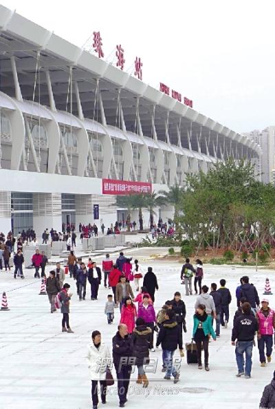匆匆开通的珠海站多项配套工程仍未竣工,站前广场的地砖铺设、园林绿化等收尾工程昨日继续加紧进行。广场西侧的一大片区域仍由围板封闭,地下交通换乘中心工程仍需时日。