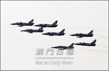 昨日下午,七架涂有“百年灵”字样的L三九教练机和一架保障机由珠海机场依次飞上蓝天,消失在云端。这正是曾在第九届中国国际航空航天博览会为观众带来精彩特技飞行表演的欧洲“百年灵”特技飞行表演队。昨起该表演队正式展开东南亚五国巡回表演之旅。