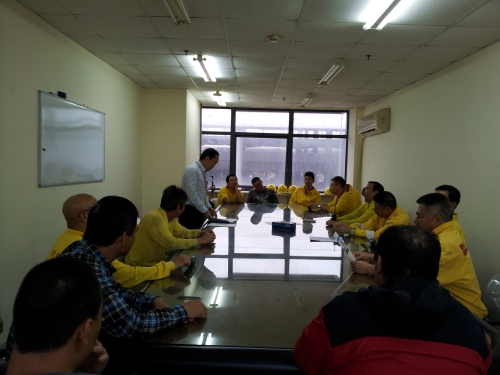 在会上由南光机场油库经理引导, 就近期同仁们在工作中上遇到的问题丶发现的潜在危险以及遇到的困难等等, 大家提出来一起分享丶讨论及检讨。
