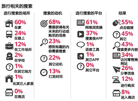 来自智能手机的大部分以旅游为主题的搜索是用户通过浏览器完成的,而不是APP。在来自智能手机的旅游相关搜索当中,约12%的搜索转化为实际购买。