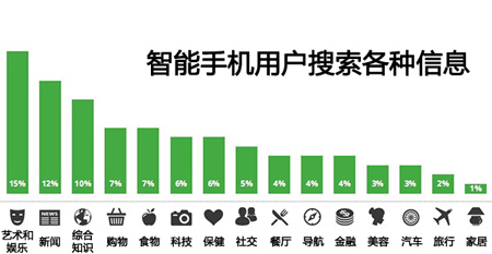 “获得导航信息”在用户使用智能手机所进行的活动当中占4%的比例,大量用户会使用智能手机来获得他们感兴趣的信息,比方说在用户使用智能手机所进行的活动当中“获取娱乐资讯”占15%的比例。