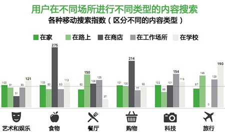 令人感到意外的是,相比其它类型的搜索,位于学校的智能手机用户更倾向于进行旅游相关搜索,比方说搜索航班和酒店等产品的价格。