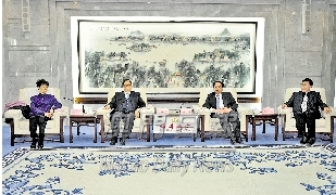 (左起)高燕、谭伯源、王敏、杨峰交流。