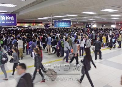 拱北口岸正清日过关客流甚众,通关环境大致畅顺。