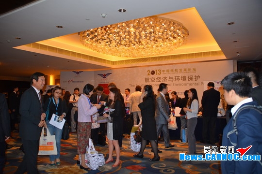 图2:5月16-17日,以“航空经济与环境保护”为主题的 2013 中国民航发展论坛在北京隆重开幕。图为参会人员签到
