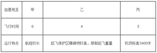 1、首先,由于丙机场标高为3400米,为高高原机场,而机队中仅Z类飞机具有高原性能,所以必须使用Z类飞机执行基地至丙的航线。