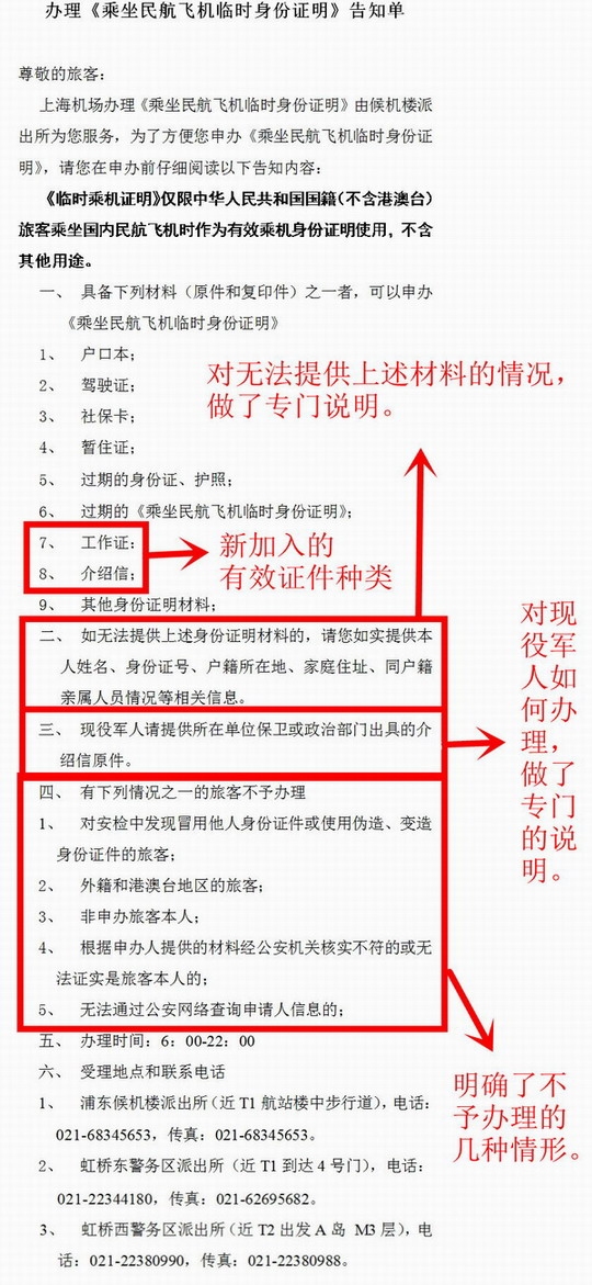 上海机场办理《乘坐民航飞机临时身份证明》由候机楼派出所为您服务,为了方便您申办《乘坐民航飞机临时身份证明》,请您在申办前仔细阅读以下告知内容: