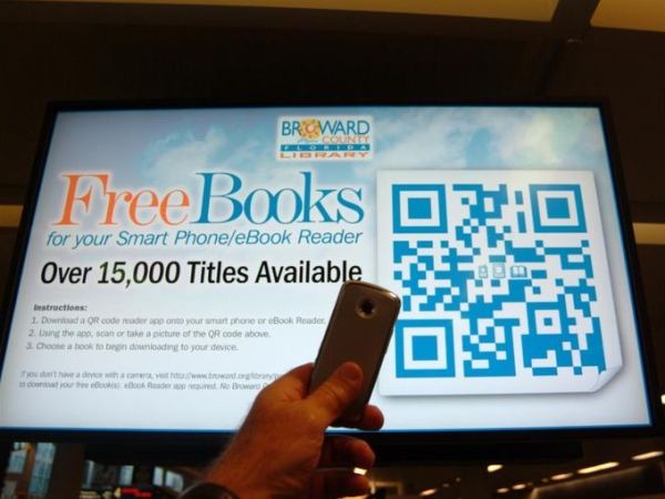 2011年美国佛罗里达州劳德代尔堡国际机场与布劳沃德郡图书馆部门联手创建了首个允许旅客免费下载电子书的机场计划。目前,该机场所有行李认领区的大屏幕上都有进入电子图书馆的二维码供旅客扫描,借此旅客可以免费阅读15000多本电子书并且还不需要图书证。迄今为止,已经有近1000人使用该机场的二维码阅读过免费书籍。该图书馆的出版专家凯瑟琳·麦克埃尔斯(Catherine McElrath)称:“读者可以免费阅读非小说、小说、儿童文学和古典文学等书籍,而且这些书永不过期。”