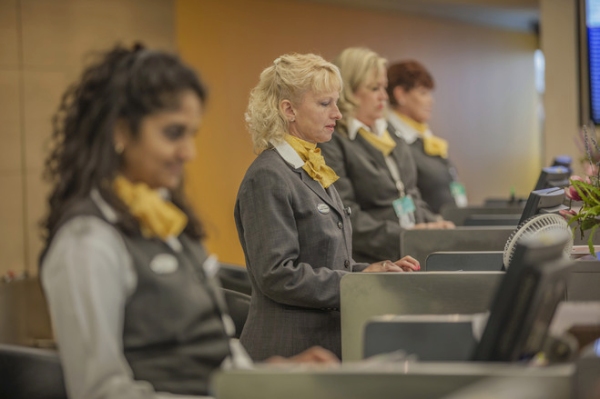 美联航奥海尔机场主候机楼的尽头隐蔽在滑动玻璃门后,门内有四名系着金色围巾的女职员在等候环球服务计划的会员。这些会员不用排队安检,拿上机票后,他们就直接走到了安检队伍的前方,插在了其他旅客的前头并因此引起了一些困惑的表情。