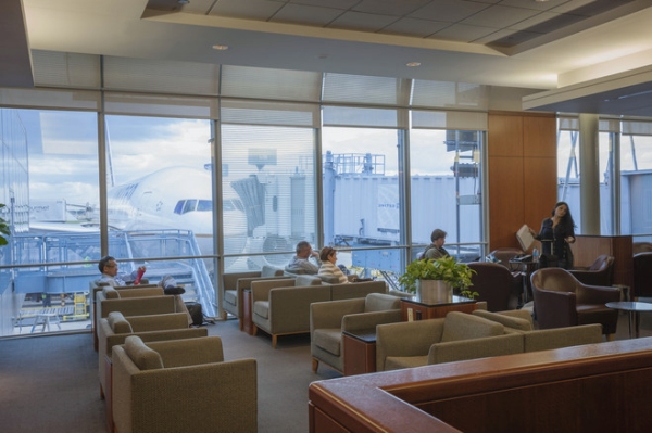 图5:与美联航其他精英旅客相比,环球服务会员可获得更多升舱机会,提前预定可获得更大幅度的座舱升级,还可进出包括全球头等舱(Global First)休息室在内的美联航在各机场的贵宾室。图为美联航在奥海尔机场的全球头等舱休息室。