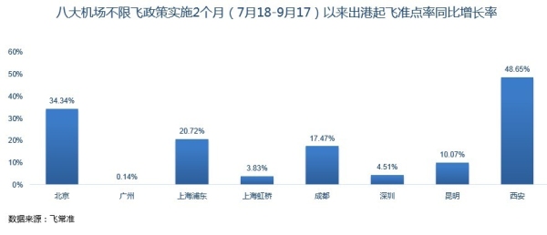 八大机场不限飞政策实施2个月出港起飞准点率同比增长率