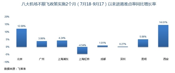 八大机场不限起飞政策实施2个月进港准点率同比增长率