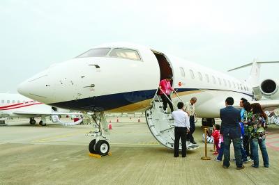 不少家长带同子女参观公务机展