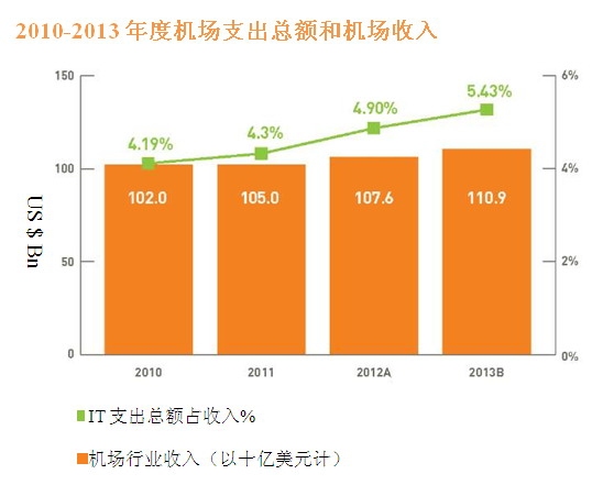 今年,预计IT支出将增至5.85%。若以美元计算,将增至5.8亿美元,与2012年相比,2013年增长了23.6%,远高于机场收入增幅,后者仅增长11%。