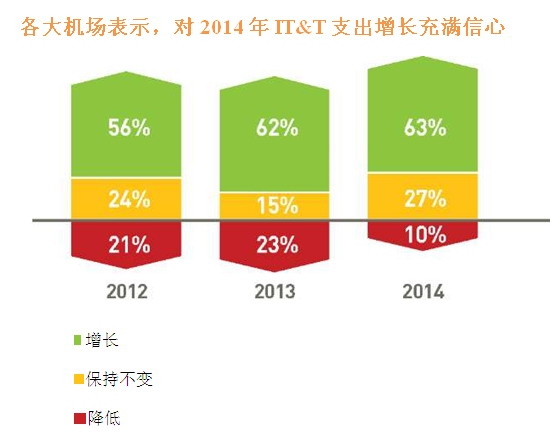 机场技术负责人充满信心,80%的技术负责人预计,2014年会有更多的预算用于技术层面,而仅有10%认为预算会缩减。