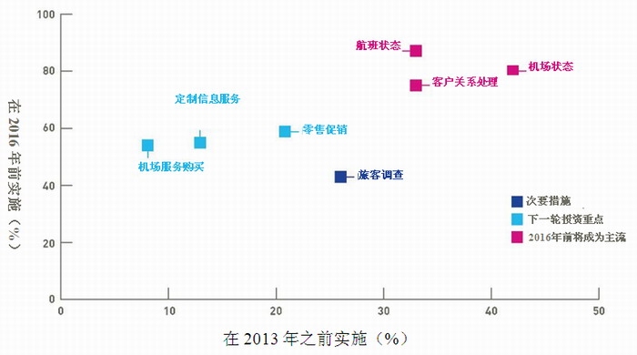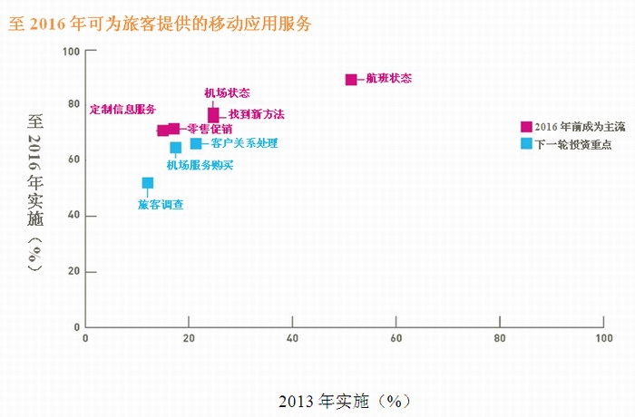 然而,中国机场已经认识到移动技术在未来的重要性,约五分之四的受访机场预计,在2016年年底前,移动技术将成为客户服务通信的主要渠道。
