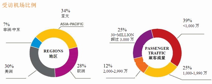 今年,我们进一步完善了数据加权系统,以确保其成为全球旅客流量的代表性样本,并弥补回应团体的年度波动情况。我们采用国际机场协会年度旅客流量统计,根据各地区客运量占全球客运总量的比例,采用了相关系数。(注:我们将重点放在旅客流量上,因为这是最可靠、最易追踪,并可以通过公共渠道获得的数据)