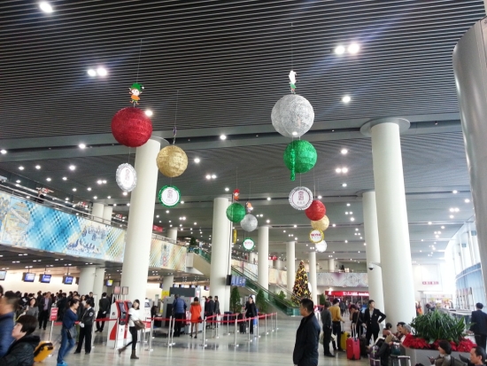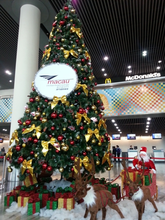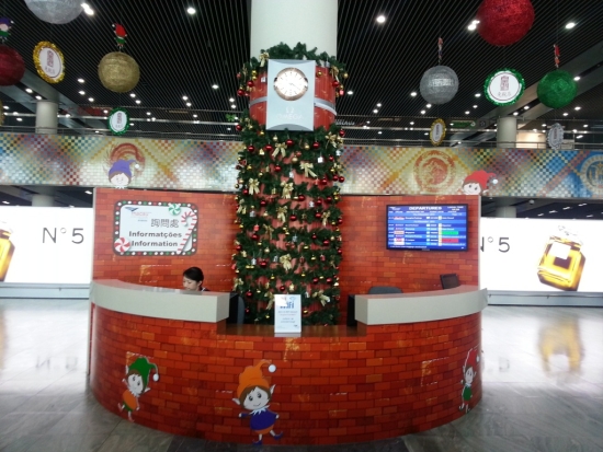 十二月是圣诞月,澳门国际机场以新的幻想主题,将客运大楼装扮得熠熠生辉——圣诞仙子们降临在机场三个询问柜台和行李寄存处的房檐上,为圣诞节期间出行的乘客,送上最美好的祝愿;高悬天花板的巨型圣诞球闪烁出绚丽夺目的色彩,渲染着节日的气氛;大丶小圣诞树和舞台设置在离境登机区,作为乘客拍照留念的背景。圣诞节期间,机场安排乐队在候机楼以歌声祝愿旅客们节日快乐幸福。