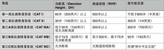 盲降标准(见下表)