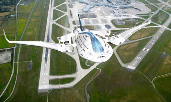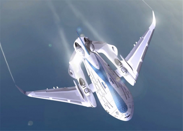 西班牙设计师Oscar Vinals设计了一款名为“天空鲸鱼”的未来概念飞机。该飞机有3层,可搭载755人。该机使用混合动力引擎,引擎可以倾斜45度,可在很短的跑道上降落。飞机顶部的太阳能板可以为飞机提供额外的动力,并为电子系统供电。此外,该飞机机翼具有自主修复功能。