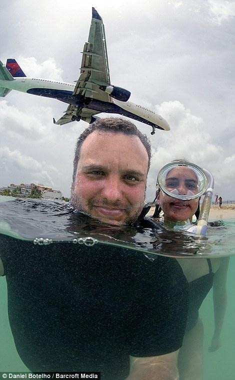 丹尼尔在这里游玩了一个月的时间,拍摄了大量飞机掠过头顶的照片,包括自拍照。