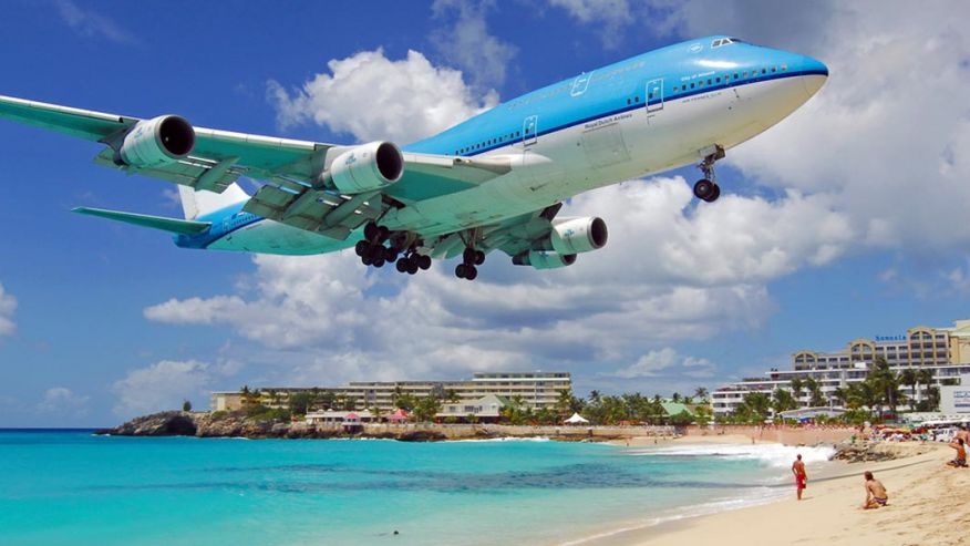 圣马丁朱莉安娜公主国际机场。由于机场的飞行跑道极短,飞机必须飞得很低才行,而且要求飞机准确无误地在所规定的航道上飞行才会平安无事。因为机场和马霍海滩之间仅仅有一条窄窄的公路相隔,所以在沙滩上晒太阳浴的游客经常可以感受到飞机的强大气流,有时候甚至会弄伤游客们。