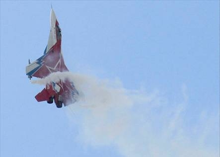 对于军用飞机,航展的另一个主要功能是展示肌肉。在1989年的巴黎航展上,前苏联功勋试飞员普加乔夫,艺高人胆大,驾驶苏霍伊设计局的苏-27飞机,表演了震惊世人的“普加乔夫眼镜蛇”动作,即驾驶飞机减速,飞行员快速向后拉杆使机头上仰至110度~120度之间,整个飞机呈垂直站立姿态,再迅速改为平飞。这一动作可谓技压群芳,当时没有一架欧美战斗机能够做出。一时间,国际上对苏-27刮目相看,认为它是世界上最先进的战斗机,无形中促进了飞机出口。