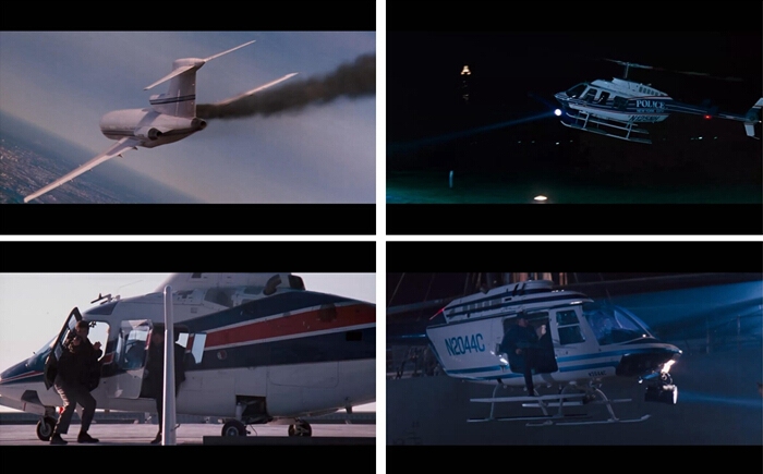 其实,好莱坞影片中不少反派的智商没那么不堪,例如《反恐特警组》(S.W.A.T)中,常常以光辉形象出现的杰里米·雷纳此次扮演反派,成功地调虎离山,飞行员也够意思,居然操纵“里尔23”飞机在狭窄的大桥上降落,创意十足。本来马上功成名就,但杰里米居然打开舱门射击追来的男主,弄得飞机起飞速度不够,再好的飞行员也回天乏术。最终杰里米在和男主的打斗中身首异处,非常血腥,套用一句流行语, “No Zuo No Die”。《反恐特警组》是笔者看过影片中,真正毁掉一架飞机的一部,虽说老掉牙的“里尔23”也没多少钱,但毕竟是古董,和刚才提到为省预算将飞机偷梁换柱的行为形成鲜明对比。(另外,片中一架AW109被一枪狙中引擎,也是够悲催的)