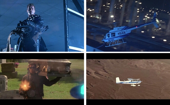 不知是《终结者》成就了阿诺,还是阿诺成就了《终结者》,反正那片、那人是公认的科幻片经典。《终结者2》中,先是阿诺拿着加特林机枪狂扫完爆警方,之后直升机追汽车大战中,“贝尔206”大放异彩,在T1000机器人手中简直就达到人机合一的境界。《终结者3》中,阿诺在墓地单手持机枪,依然是全压制却零伤亡,转镜头男主女主开着一架1958年产的“赛斯纳172”飞向美军秘密基地——没有发达的通航产业,这事还真挺难办。