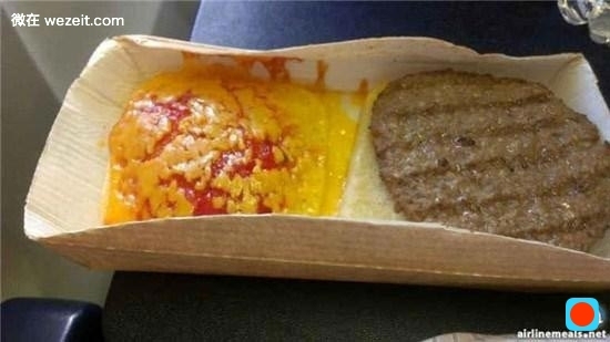 瑞安航空是欧洲最大的廉价航空公司,这坨汉堡目测内容物是两片白吐司加一片牛肉,还有加热后面目全非的起司和番茄酱。虽说该有的都有,但弄成这样,请问是因为机票太便宜所以心里有恨吗?