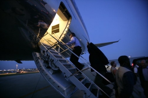 在总统飞行之前,空军派C-17环球霸王运输机将总统的车队提前运抵目的地。其中包括:防弹轿车,厢式货车以及防卫武器等。