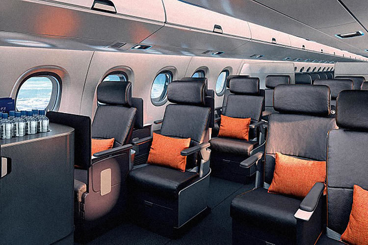 在头等舱中,重新排列的座椅可为乘客提供超过 50 英寸的腿部活动空间,同时不会减少客舱内的座椅数量。经济舱也保留了在通道两边各设两座的设计,其优势在于可提高乘客舒适度,提升登机、下机效率。座椅结构紧凑,18.3 英寸的宽度为同类别机型中最宽,可为乘客提供更多的腿部活动空间。 此外,重新设计的机窗也在视觉上拓展了客舱空间。