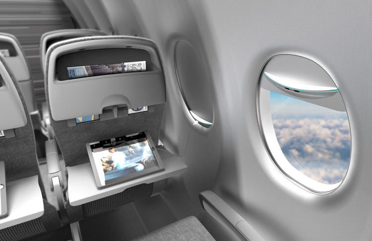 讨论节能环保问题方向总是正确的。万米高空相较于地面来说,太阳照射的程度本来就要强烈一些,那如何利用太阳能呢,全球最大机舱内饰制造商 B/E Aerospace 给出了一个办法,设计师在遮光板的外部加了一层太阳能接收装置,可以将能量有效存储起来。与之相连的机舱内部配有可充电锂电池,位于遮光板玻璃下方,设有一个 USB 接口,可用于乘客对手机或是平板电脑等移动设备进行充电。