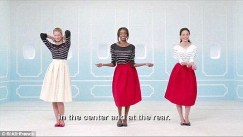 法国航空公司最近刚出的安全视频也很吸人眼球,在这4分钟的视频中,有5个时尚漂亮的女人手持道具演示出了安全注意事项,所用语言有法语和英语。明艳动人的美女配上动感的音乐,成功地让乘客全身心关注安全规则介绍。