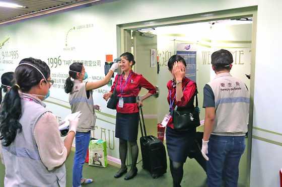 由于前日有韩国往澳航班取消,故健康申报程序实施后,首个由首尔飞往澳门航班在昨日上午约十一时许抵埗,机上七十多名乘客以及全部机组人员落机后,首先接受卫生局人员量体温,乘客之后获发健康申报表自行填写。现场所见,不少韩国乘客都戴上囗罩,细心填写申报表,包括个人资料、入境日期、航班编号、在澳联络地址、到达前十四天内曾到过城市和国家、到达前十四天有否与传染病人有密切接触,以及有否发热、咳嗽、腹泻、呼吸困难等征状。