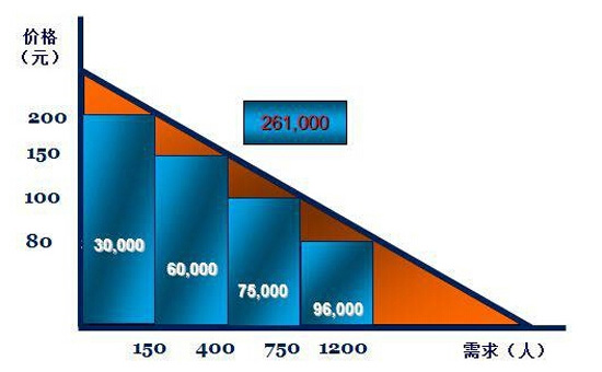 太少了,所以机票卖100块钱一张,是不可以的!即使满舱又怎样?不能这么卖,问题来了,要把价格分级,不同的价格有不同的需求,从而达到利润总和最优化。