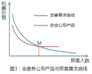 对于低成本公司来说,提高票价会带来更多高端收入,但也会极大地增加经营成本,因而他们不会推出高价票,但为什么没有高端舱位收入也能获得可观的盈利?从很大程度讲,向旅客提供点对点需求以外的附加服务弥补了高舱收入缺失的不足,如图2所示,全服务公司提供的是包含餐食、行李等服务的捆绑票价,但捆绑票价可能导致部分不需要捆绑服务的旅客流失,而低成本公司向旅客提供的往往是裸票价,只有基本需求的旅客可以只付较低的票价,而有额外需求的旅客则可以根据需要购买附加服务,这样的话低成本公司提供的产品更加细分,也更接近于旅客的真实需求,因而也能够获得较高的收益。