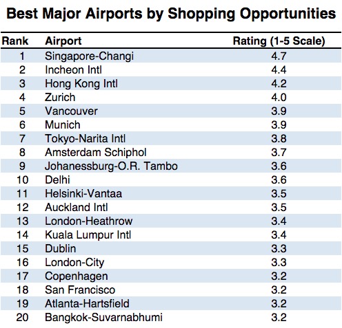 樟宜机场的购物体验受到相当高的评价,报告称,樟宜机场“价钱合适”的商品种类和网上预购物的功能都可圈可点。用户可以通过机场网站进行预购,然后直接在乘机时提取商品。
