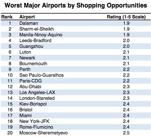英国航空评级机构Skytrax发布了2015年世界前百位的主要机场排名,对世界各大城市的主要机场划分了先后。28日,商业数据公司Priceconomics利用Skytrax的数据,通过对总排名、等待时间、清洁度和购物体验对各大机场进行了细分排名,试图得出“全世界最烂”的机场有哪些。
