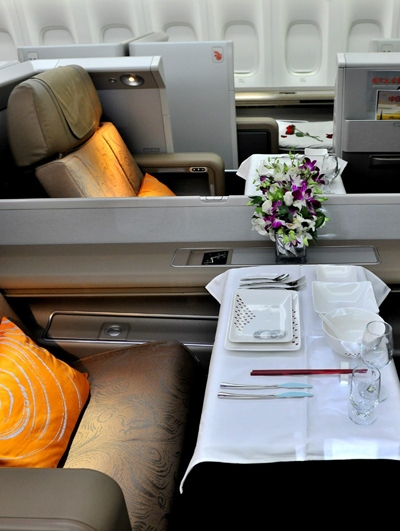 图:国航首架波音747-8的客舱内饰。摄影:王泽民