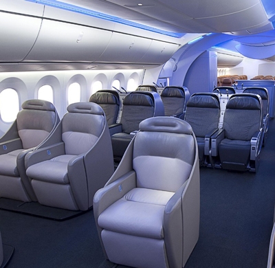 图:波音787梦想客机新型头顶行李舱的设计不再占用乘客的头顶空间。资料图