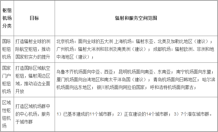 3、重点构筑区域性的枢纽机场群和地区性的支线机场群
