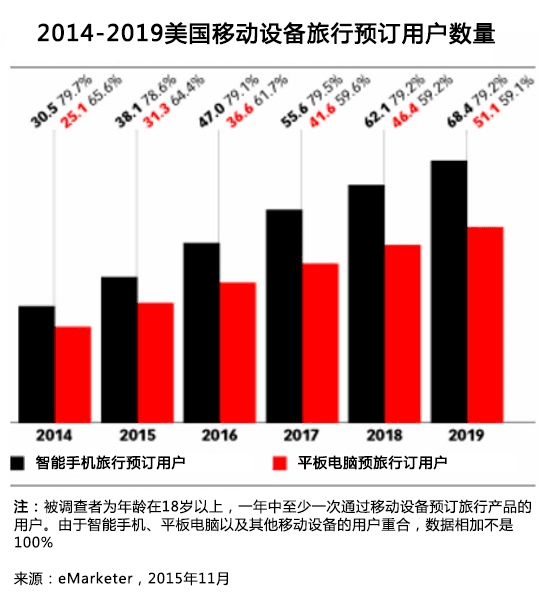 今年大概有62%的休闲游游客通过移动设备制定旅行计划,同比增长了26%,明年这一数字预计将升至73%。
